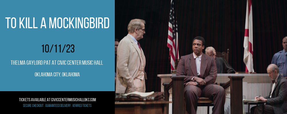The Thelma Gaylord PAT At Civic Center Music Hall , Oklahoma City, Oklahoma is hosting a performance of "To Kill a Mockingbird" on Wednesday 11th October 2023. More highly regarded awards have been given to this legal drama than any other, and it is widely regarded as the genre's best. an enchanting narrative, stunning visual effects, and a fantastic ensemble all contribute to a truly incredible time. It goes without saying that thisamazing piece of historical art will be a huge success with audiences everywhere. There are only a few of tickets available, so don't wait. To put it simply, this is the season's most mind-blowing production, and you should not pass it up.