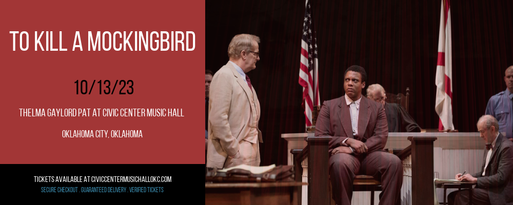 'To Kill a Mockingbird' will have a performance at the Thelma Gaylord PAT At Civic Center Music Hall , Oklahoma City, Oklahoma on Friday 13th October 2023. It has more awards than any other legal drama and is unanimously acknowledged upon as the best of its kind. All the flavors for a fantastic time are present: an alluring narrative, stunning visual aids, and a superb ensemble. All indications point to this incredible historical work of art being a resounding success. There are only so many tickets on sale, so don't wait to buy yours. If you want to see the most mind-blowing production of the season, trust us: this is it.
