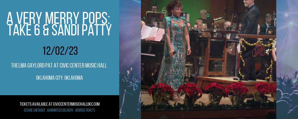 If Thelma Gaylord PAT At Civic Center Music Hall has to cancel the A Very Merry Pops: Take 6 & Sandi Patty event, your tickets will be fully refunded, providing you purchased them from a legitimate source, such as direct from the Thelma Gaylord PAT At Civic Center Music Hall Box Office or TicketSqueeze.com etc. If the A Very Merry Pops event is postponed, your tickets will be automatically valid for the next scheduled date at Thelma Gaylord PAT At Civic Center Music Hall. No action is needed.