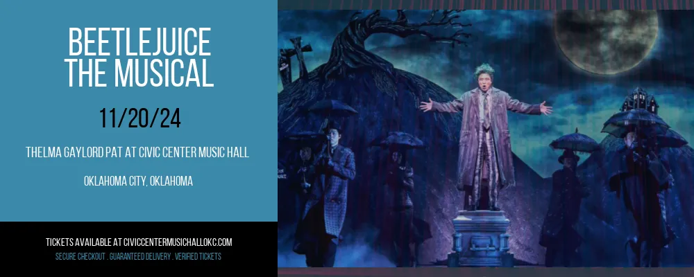 You can buy Thelma Gaylord PAT At Civic Center Music Hall Beetlejuice tickets easily by going to TicketSqueeze.com or by clicking the "Buy Tickets" button on this page. Alternatively you can visit the Thelma Gaylord PAT At Civic Center Music Hall Box Office directly, or call them on (405) 297-2584.