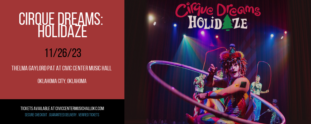 Thelma Gaylord PAT At Civic Center Music Hall is undoubtedly one of the best venues in the whole of Oklahoma, well known for its hospitality and style, as well as the vast range of tasty snacks. With popular bars & restaurants only minuets away, it's the perfect location to settle into for the big show! Cirque Dreams: Holidaze is once again gracing Oklahoma, Oklahoma City with some of the premier performers in the US in this unforgettable production. The New York times and other critics alike have unanimously agreed Cirque Dreams: Holidaze is better than ever as the all-star cast hit the road once again! You'll be sure to give a standing ovation with an ear-to-ear smile by the end of the production. Suitable for all ages and audiences, so make it a trip for all, bring your friends, family, colleagues, even a date! To avoid disappointment, Grab your tickets right this second, tickets will NOT be around for long!