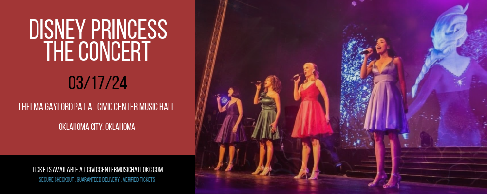 This March’s biggest family-fun concerts are coming to one of the coolest venues in Oklahoma. That’s right! Disney Princess - The Concert is coming to Thelma Gaylord PAT At Civic Center Music Hall in Oklahoma City on Sunday 17th March 2024 and you’re invited to join the fun. Not only is Thelma Gaylord PAT At Civic Center Music Hall one of the biggest all-ages concert venues in the country with a history of sold-out shows, but it’s got everything you need for unrivaled entertainment and endless memories. Just imagine watching your favorite awesome superstars and charts-topping artists as they perform with the help of modern light and sound engineering that also features crystal clear sightlines. You will feel like a part of the show from every seat in the house. Let’s not forget that Thelma Gaylord PAT At Civic Center Music Hall is also backed by a friendly staff who will take care of you and make sure you can walk away smiling. Best of all, the fun doesn’t even have to stop after the curtain call. Because Thelma Gaylord PAT At Civic Center Music Hall is in the neighborhood of the city’s best bars, restaurants, and attractions that are just waiting to make your Sunday night something special. So what are you waiting for? Click the 'get tickets' link and order your tickets to see Disney Princess - The Concert and all other events coming to Thelma Gaylord PAT At Civic Center Music Hall in Oklahoma City, Oklahoma this spring!