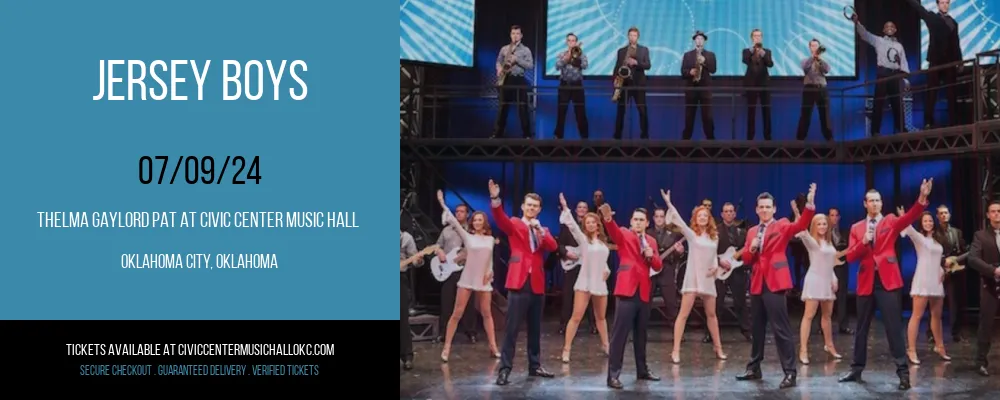 Jersey Boys is planning to blow away audiences on Tuesday 9th July 2024 when they come to the world-famous Thelma Gaylord PAT At Civic Center Music Hall stage. This event marks one of the most anticipated premieres that Oklahoma City, Oklahoma will get to see in all of 2024, so you can bet that tickets will sell out fast. Critics have previewed Jersey Boys and are naming it one of the boldest and most colorfully glorious shows that you can catch this 2024, and theatre-goers are taking notice. So don’t miss out on the excitement that has social media and the entire theater world raving. Click the Buy Tickets button below and get your tickets while supplies last!