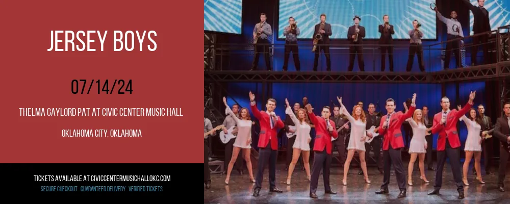 You can buy Thelma Gaylord PAT At Civic Center Music Hall Jersey Boys tickets easily by going to TicketSqueeze.com or by clicking the "Buy Tickets" button on this page. Alternatively you can visit the Thelma Gaylord PAT At Civic Center Music Hall Box Office directly, or call them on (405) 297-2584.