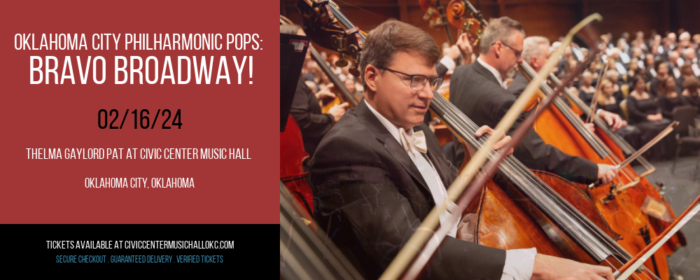 Clear your schedule for Friday 16th February 2024 now because Oklahoma City Philharmonic Pops: Bravo Broadway! is coming to Oklahoma City in 5,4,3,2... On that day, the entire Thelma Gaylord PAT At Civic Center Music Hall will be dancing along with this amazing artist in what may be one of the most outstanding music events of 2024. We are sure you love Oklahoma City Philharmonic Pops: Bravo Broadway! as much as we do. So team up with your squad and be sure to get your seats in time as Oklahoma City Philharmonic Pops: Bravo Broadway! is known for selling out events. Do not miss out on the event everybody in Oklahoma will be talking about for the rest of the year! Get hold of your tickets now by clicking the ‘get tickets’ button!