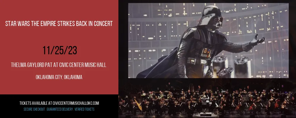 You can buy Thelma Gaylord PAT At Civic Center Music Hall Star Wars The Empire Strikes Back In Concert tickets easily by going to TicketSqueeze.com or by clicking the "Buy Tickets" button on this page. Alternatively you can visit the Thelma Gaylord PAT At Civic Center Music Hall Box Office directly, or call them on (405) 297-2584.