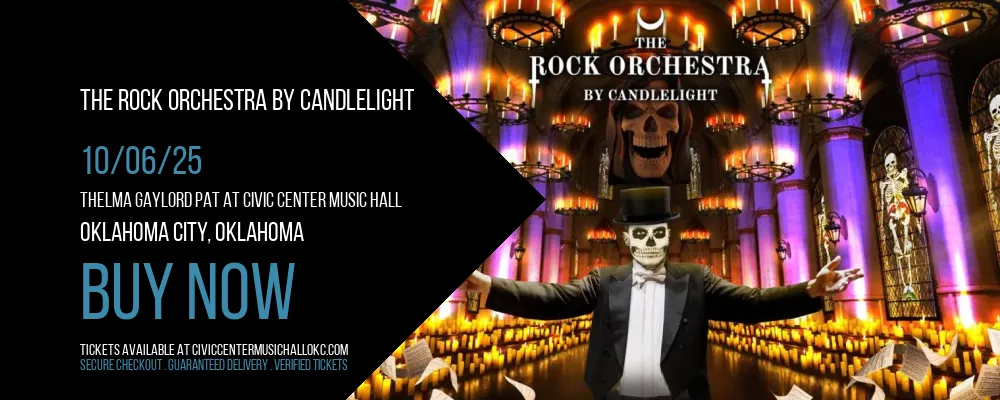 You can buy Thelma Gaylord PAT At Civic Center Music Hall The Rock Orchestra By Candlelight tickets easily by going to TicketSqueeze.com or by clicking the "Buy Tickets" button on this page. Alternatively you can visit the Thelma Gaylord PAT At Civic Center Music Hall Box Office directly, or call them on (405) 297-2584.