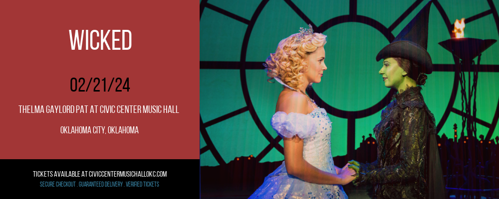 If you happen to be a Oklahoma City theatregoer - we’ve got some good news for you! The enchanting and internationally renowned musical Wicked will make a stop in Oklahoma City, Oklahoma, to take the patrons on a supreme adventure in the world of witchcraft. The exhilarating performance will take place on Wednesday 21st February 2024, and the hosts from Thelma Gaylord PAT At Civic Center Music Hall will ensure each patron feels right at home from finish to start. With its sumptuous and rich pack of offerings the theatre doesn’t leave much to be desired - spacious yet cozy rooms, comfy seats, carefully designed light and sound engineering, transportive interior and mesmerizing stage visuals to boot… Prepare to get your mind blown away and book your seat today!