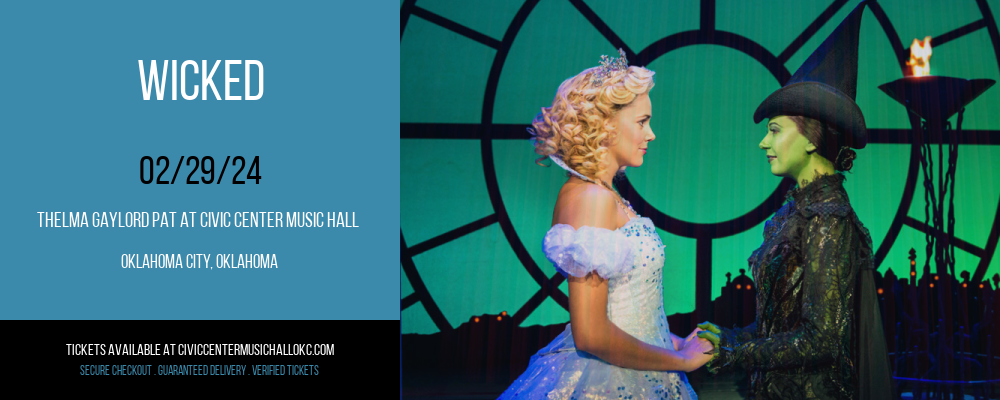 What could be more exciting and thrilling than witnessing a world-class musical performance live? This February you can add some spice to your daily routine by booking a ticket for the delightful performance Wicked as it hits the iconic stage of Thelma Gaylord PAT At Civic Center Music Hall . The event will take place on Thursday 29th February 2024, and all the theatregoers from Oklahoma City and beyond are clearing their schedules and reserving the greatest seats in the hall. The mind-bending act on stage is not the only reason for their excitement - the hosts from Thelma Gaylord PAT At Civic Center Music Hall have a long history not only of welcoming some of the finest theatre shows across the country, but also for delivering the perfect setting to enjoy them. If you don’t mind having spacious and comfy seats, authentic interior, clean view of the action on scene and top-professional staff assisting with all your requests - then Thelma Gaylord PAT At Civic Center Music Hall should be the right place for you. Make sure you visit it on Thursday 29th February 2024 and you’ll enjoy Wicked like nowhere else.